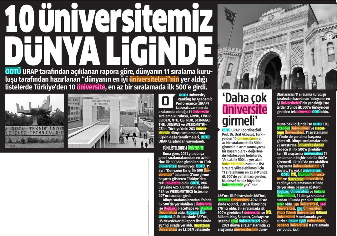 10 üniversitemiz dünya liginde