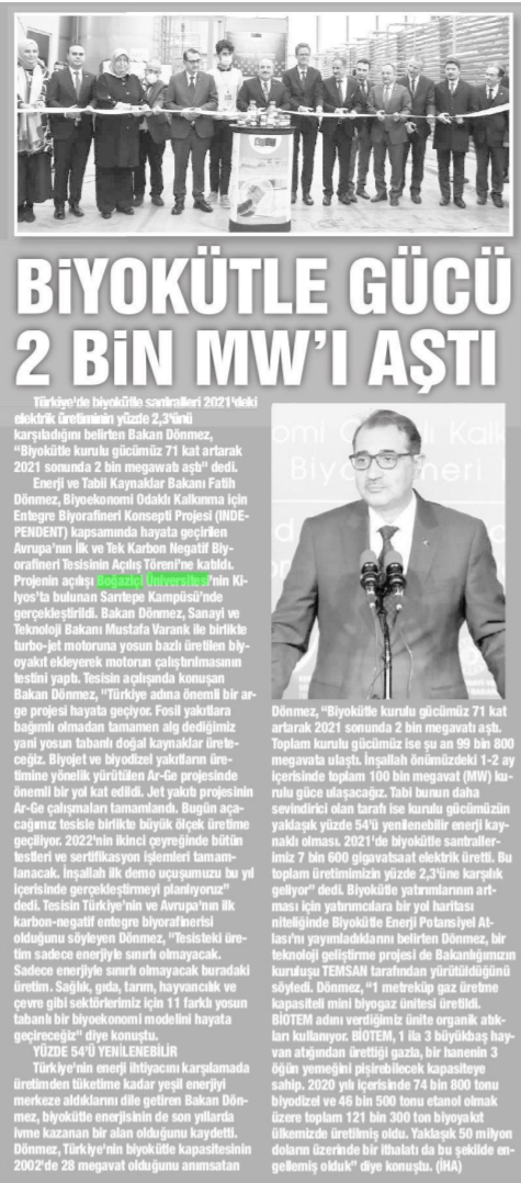 Türkiye'de biyokütle santralleri, 2021'deki elektrik üretiminin yüzde 2,3'ünü karşıladı