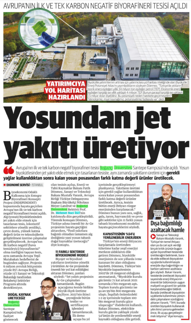 Varank ve Dönmez'den yosundan jet yakıtı üretecek tesiste ilk test