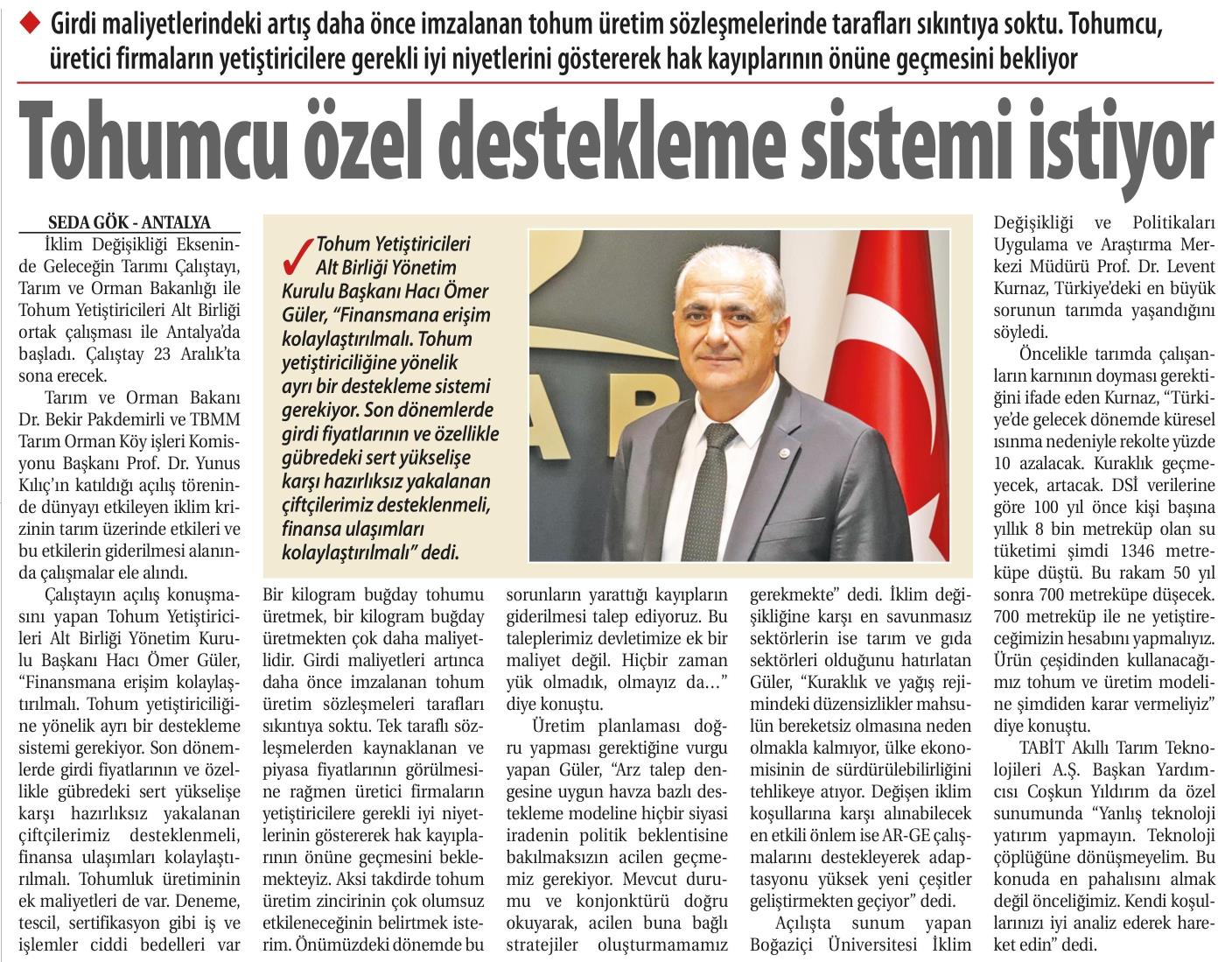 Tohumcu özel destekleme sistemi istiyor