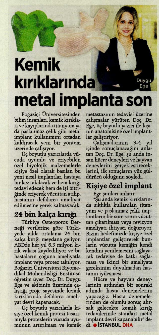 Kemik kırıklarında kişiye özel vücutta eriyen implant
