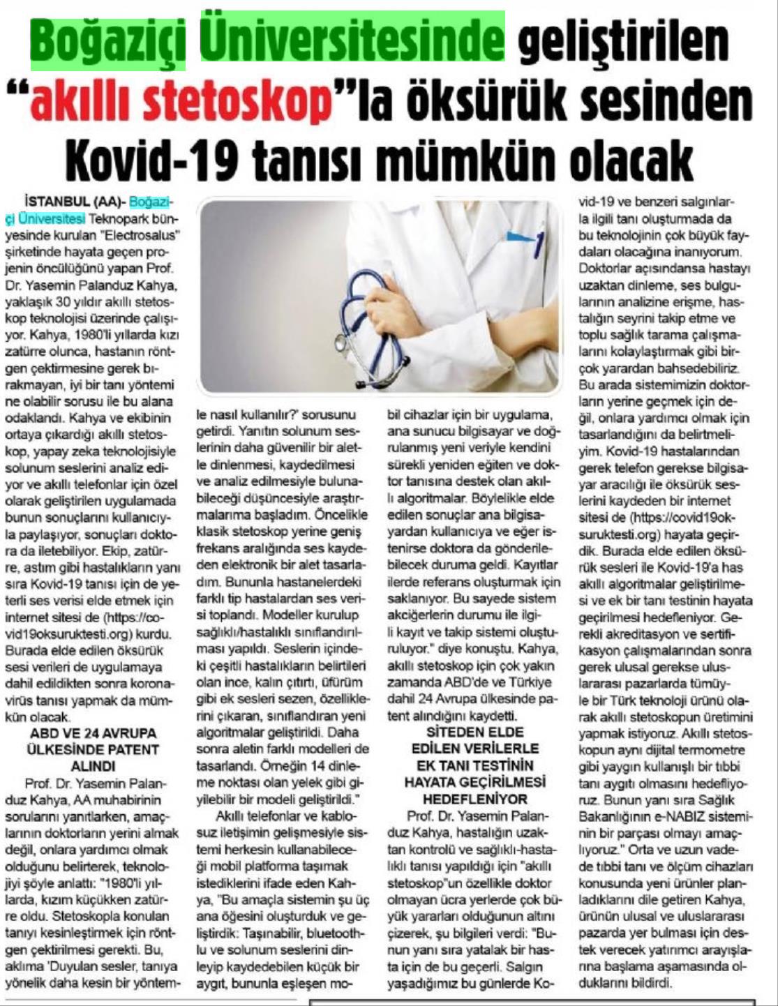 Boğaziçi Üniversitesi'nde geliştirilen akıllı stetoskopla öksürük sesinden Covid-19 tanısı mümkün olacak
