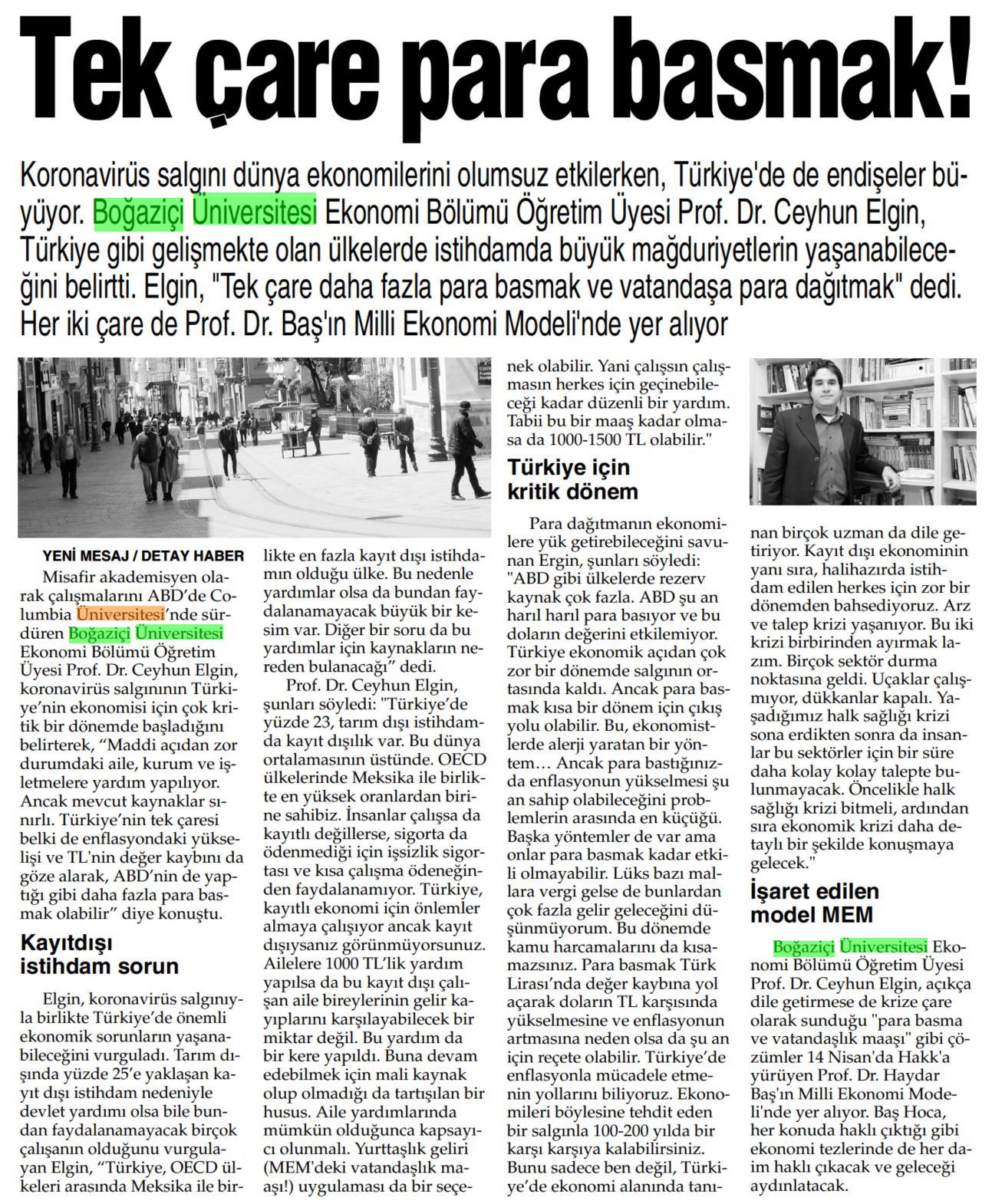 Tek çaremiz para basmak