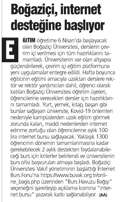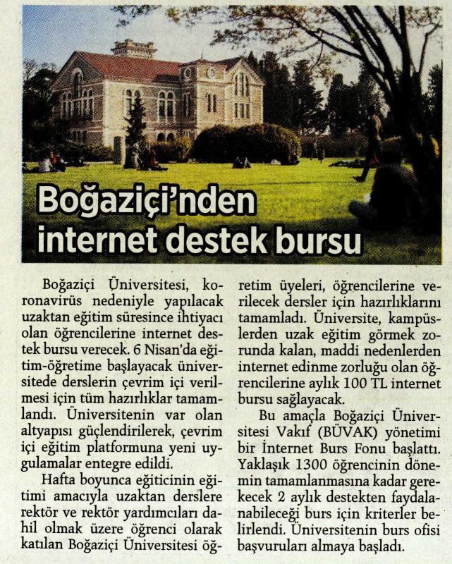 Boğaziçi'nden İnternet Destek Bursu