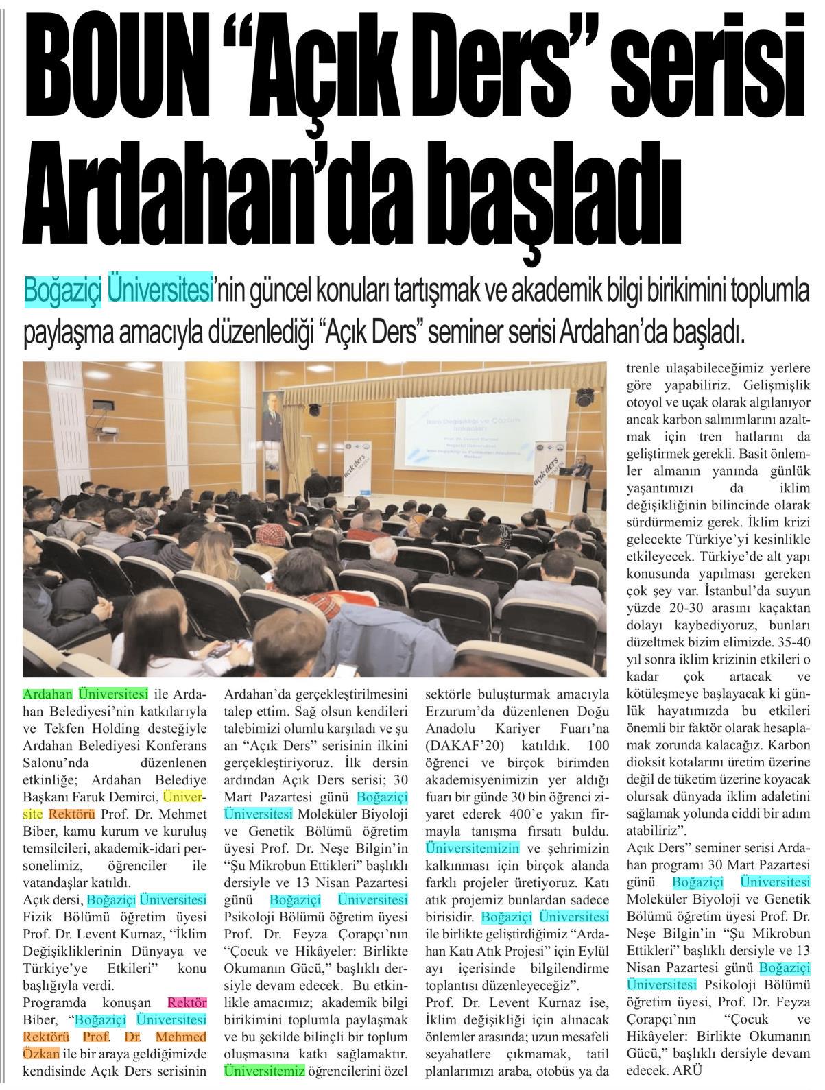 BOUN "Açık Ders" serisi Ardahan'da başladı