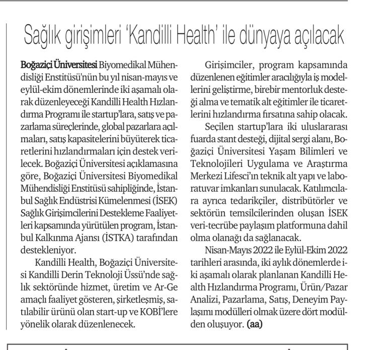 Sağlık girişimleri 'Kandilli Health' ile dünyaya açılacak