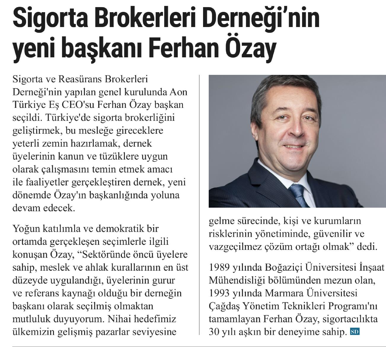 Sigorta Brokerleri Derneği'nin yeni başkanı Ferhan Özay