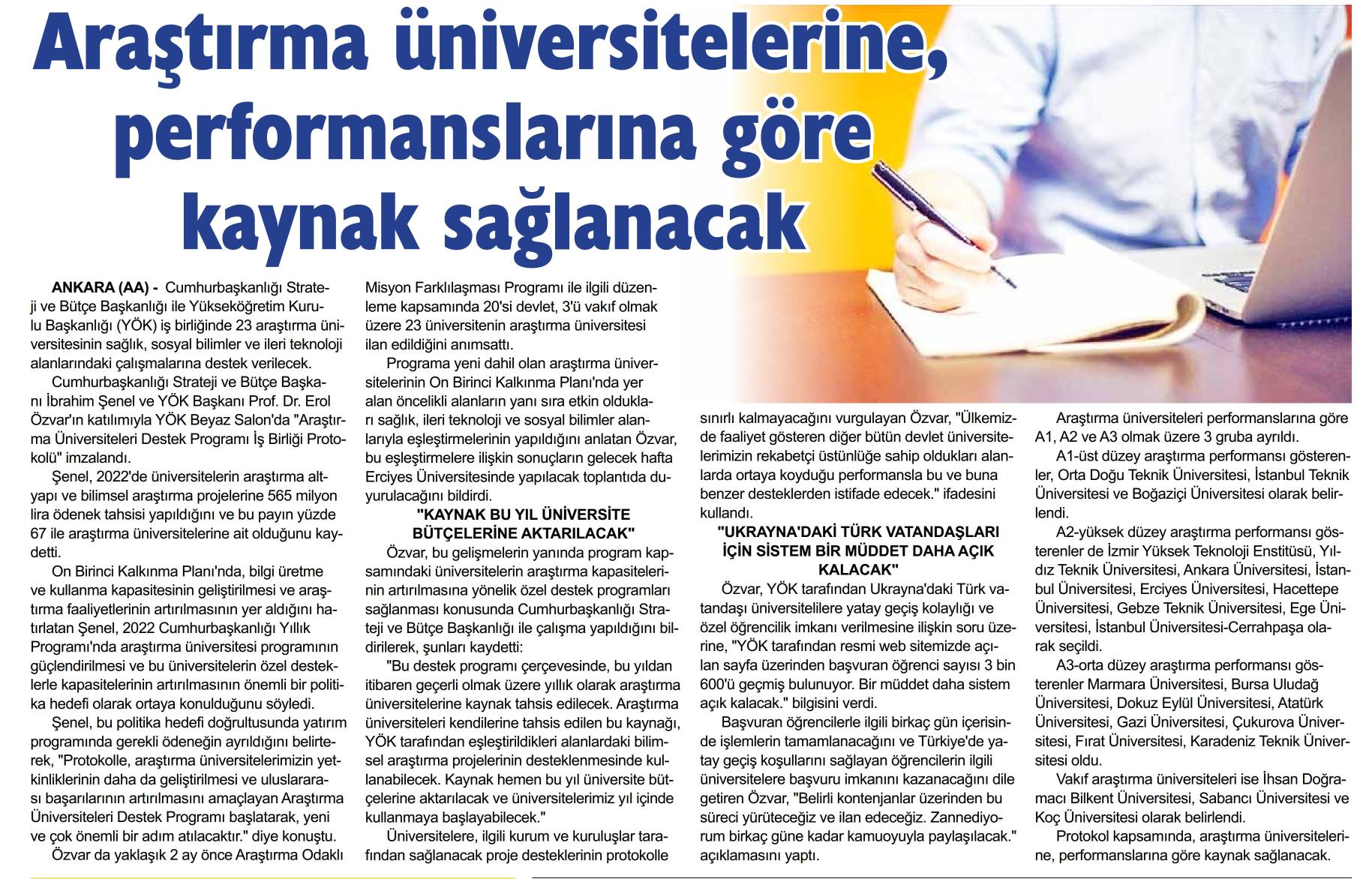 Araştırma üniversitelerine performanslarına göre kaynak sağlanacak