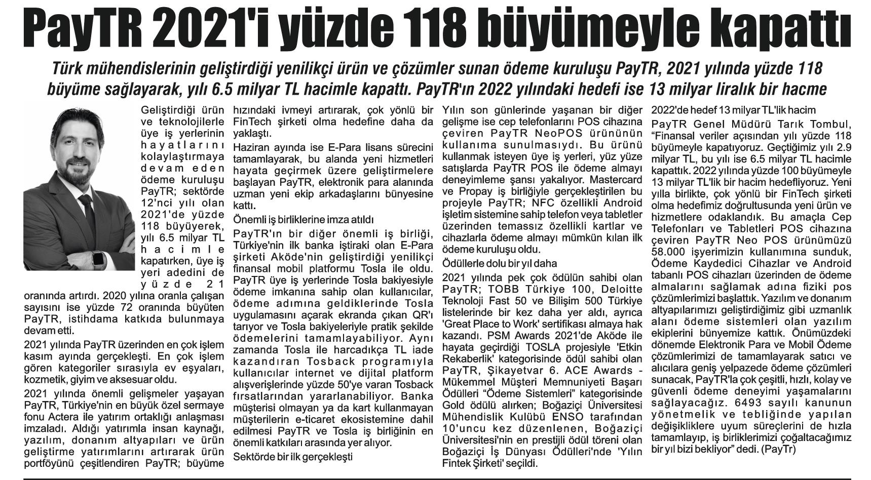 PAYTR 2021'i yüzde 118 büyümeyle bitirdi