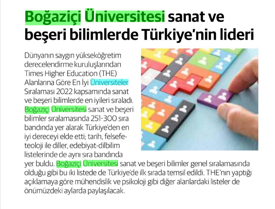 Boğaziçi Üniversitesi sanat ve beşeri bilimlerde Türkiye'nin lideri