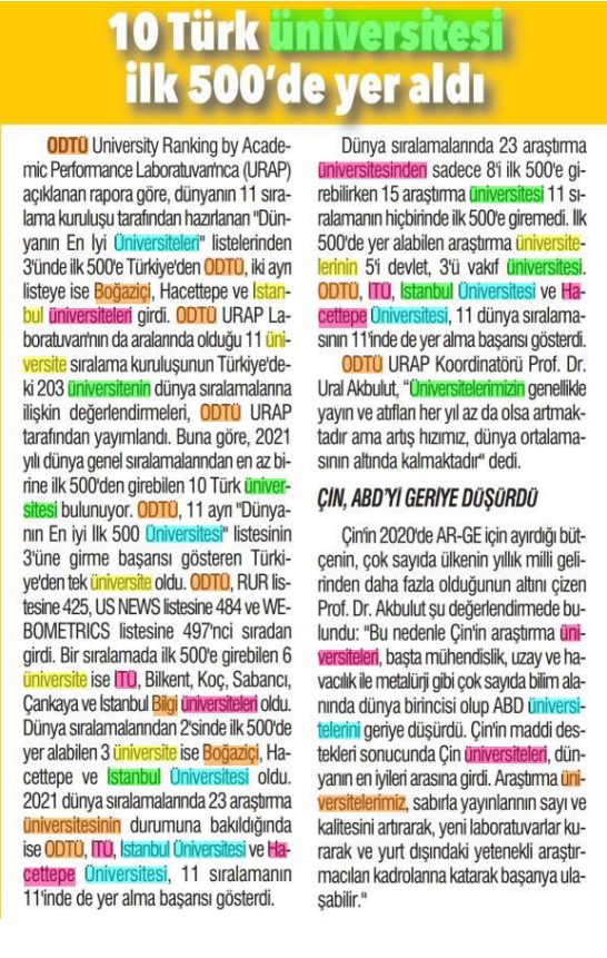 10 Türk üniversitesi ilk 500'de yer aldı