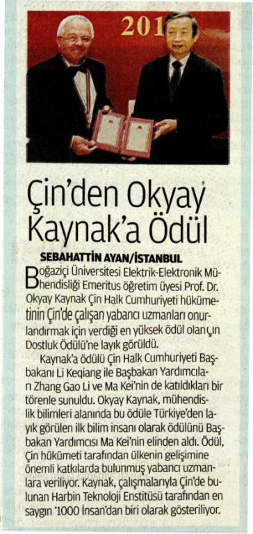 Çin'den Okyay Kaynak'a Ödül