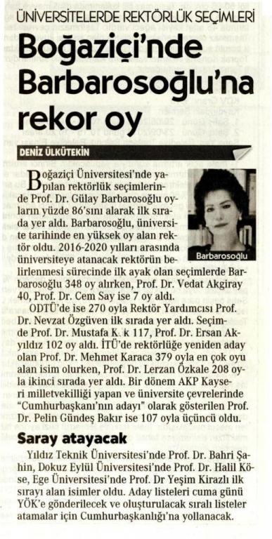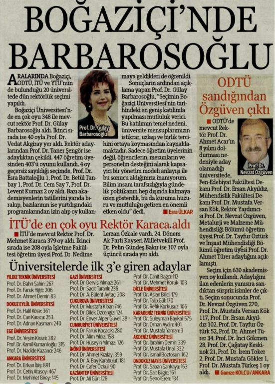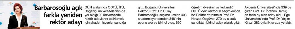 Barbarosoğlu açık farkla yeniden rektör adayı