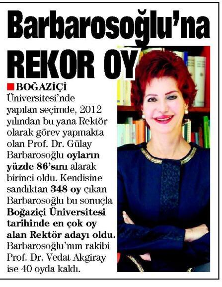 Prof. Gülay Barbarosoğlu Boğaziçi'nde rekor oyla aday