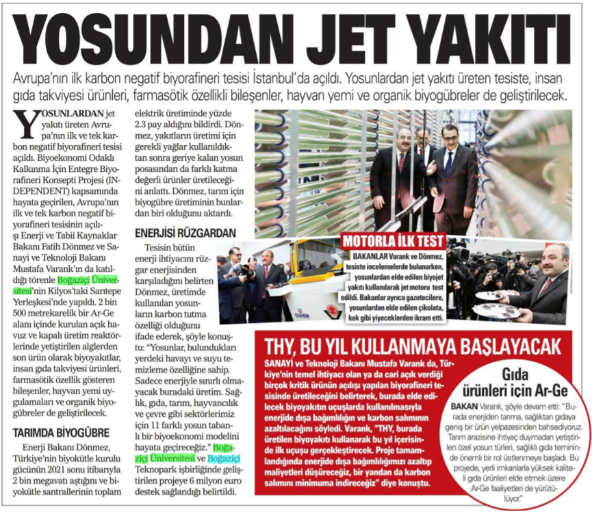 Yosunlardan jet yakıtı üretecek tesis açıldı