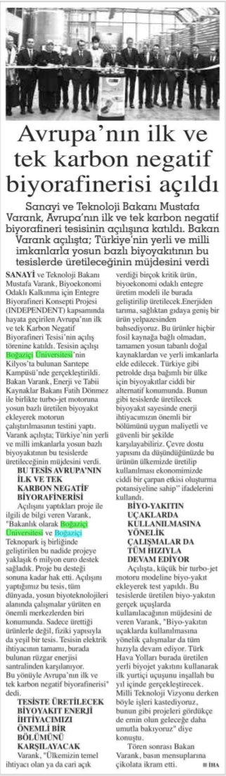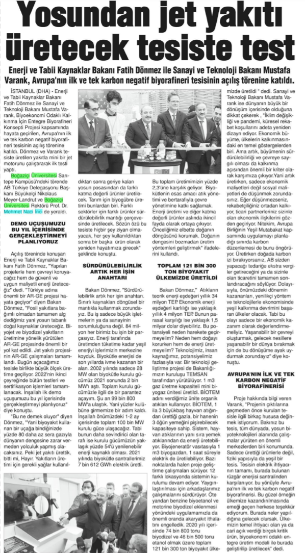 Avrupa'nın ilk ve tek karbon negatif biyorafinerisi açıldı