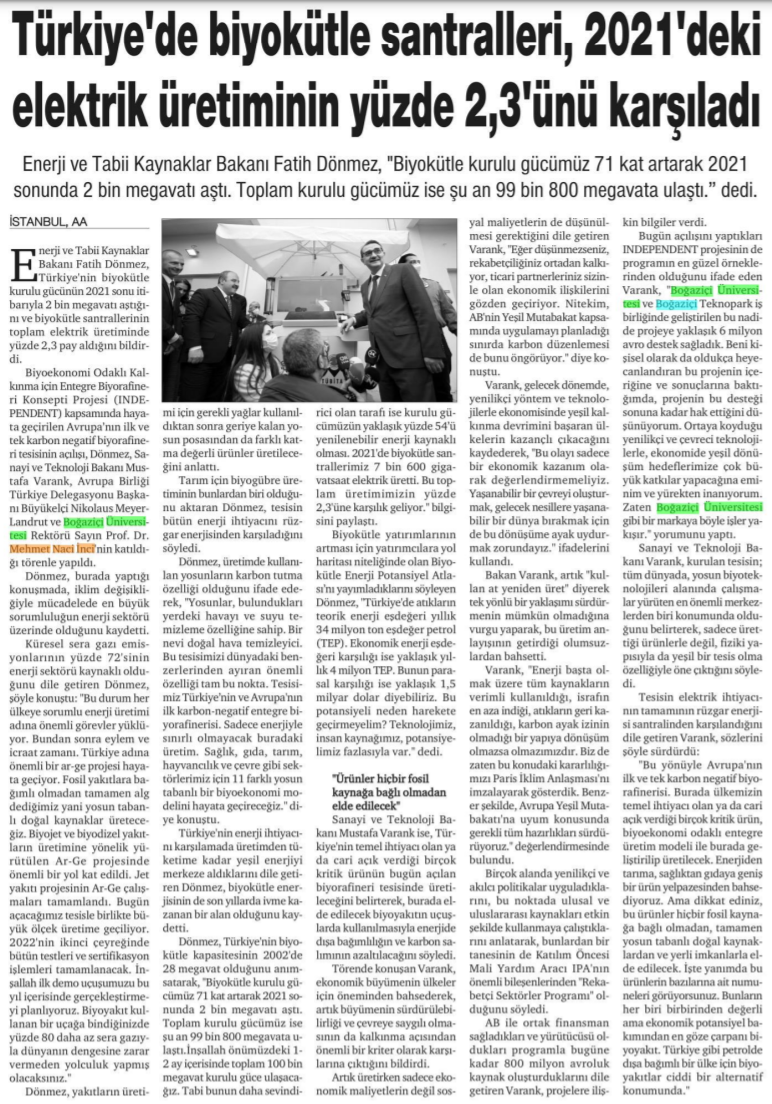 Türkiye'de biyokütle santralleri, 2021'deki elektrik üretiminin yüzde 2,3'ünü karşıladı