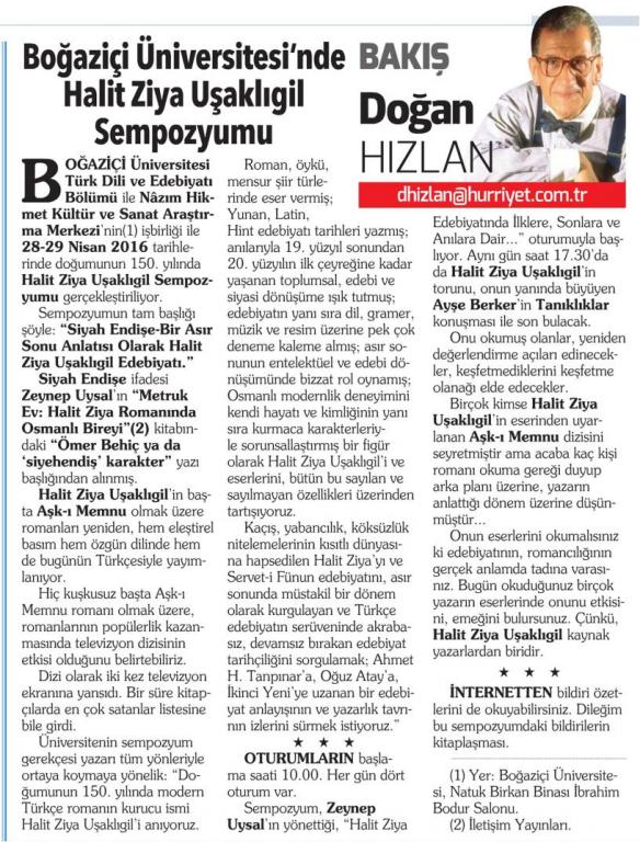 Boğaziçi Üniversitesi'nde Halit Ziya Uşaklıgil Sempozyumu
