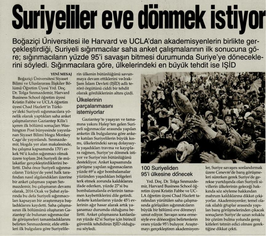 Suriyeliler eve dönmek istiyor