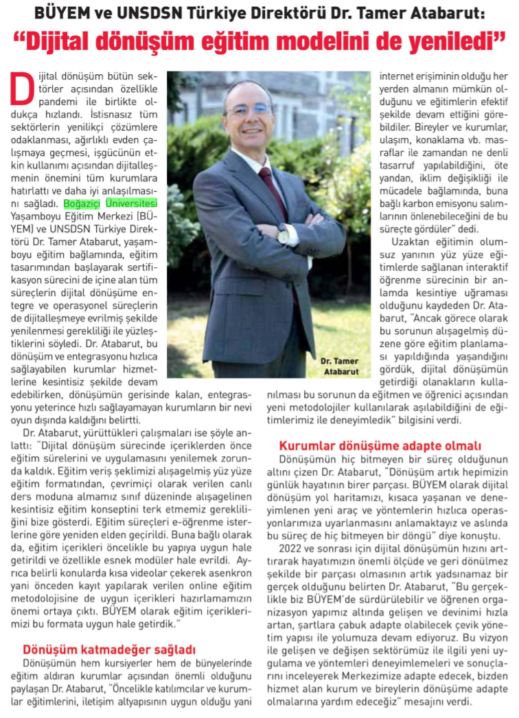 BÜYEM ve UNSDSN Türkiye Direktörü Dr. Tamer Atabarut: "Dijital dönüşüm eğitim modelini de yeniledi"