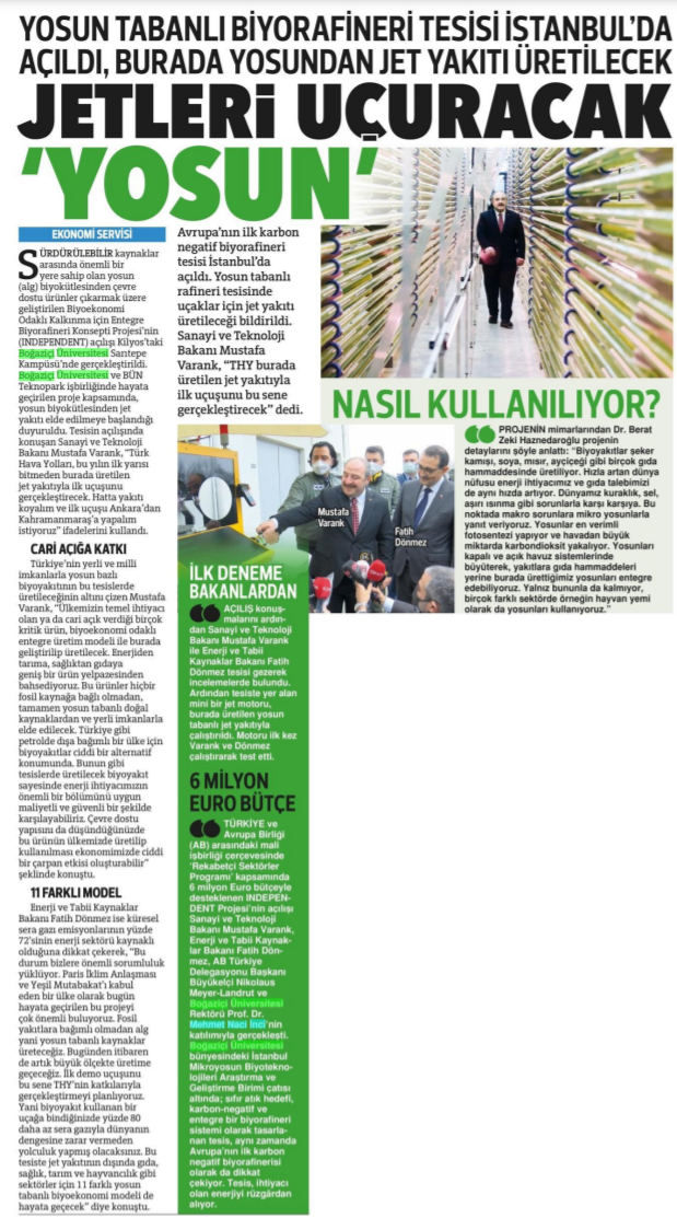 Varank ve Dönmez'den yosundan jet yakıtı üretecek tesiste ilk test