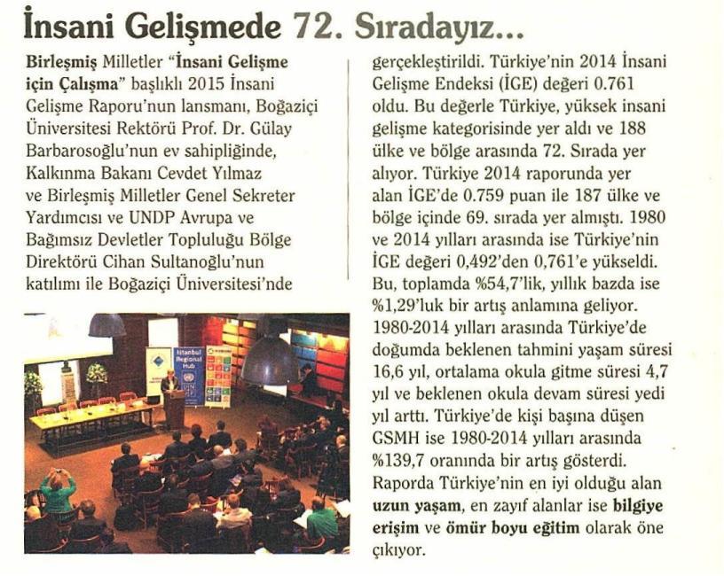 BM İnsani Gelişme Raporu Boğaziçi Üniversitesi’nde açıklandı (TRT Haber, 15 Aralık 2015)