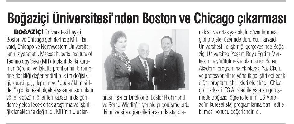 Boğaziçi Üniversitesi'nden Boston ve Chicago çıkarması