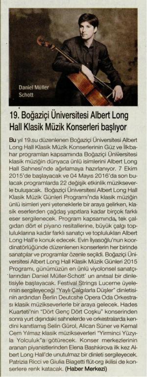 19. Boğaziçi Üniversitesi Albert Long Hall Klasik Müzik Konserleri başlıyor
