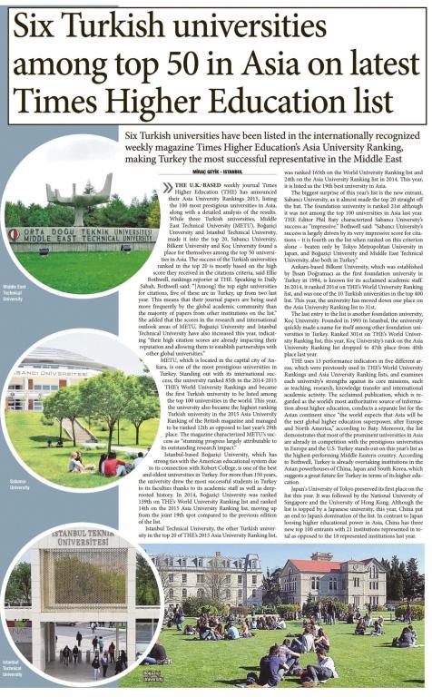Six Turkish universities among top in Asia on latest Times Higher Education list