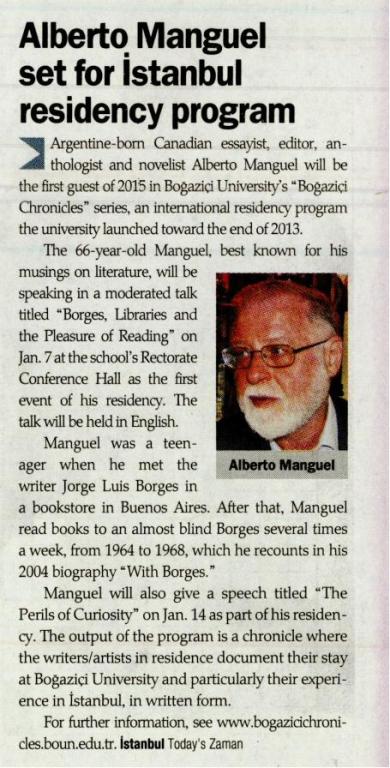 Alberto Manguel Boğaziçi'ne geliyor