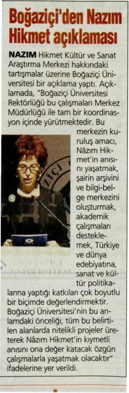 Boğaziçi'nden Nazım Hikmet açıklaması