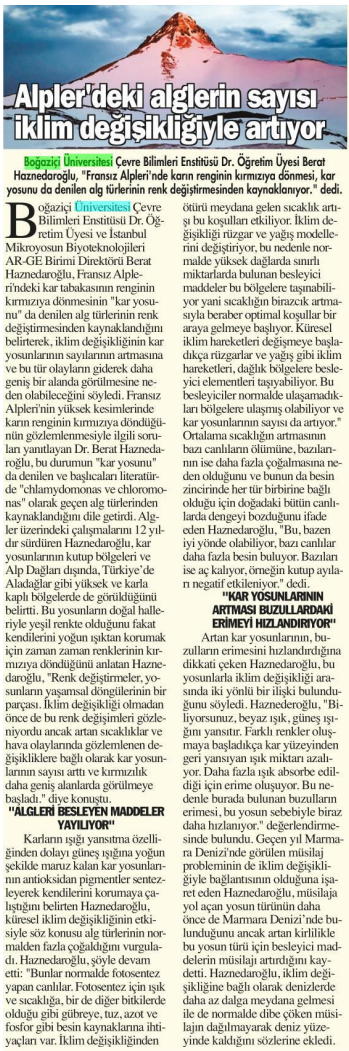 Alpler'deki alglerin sayısı iklim değişikliğiyle artıyor