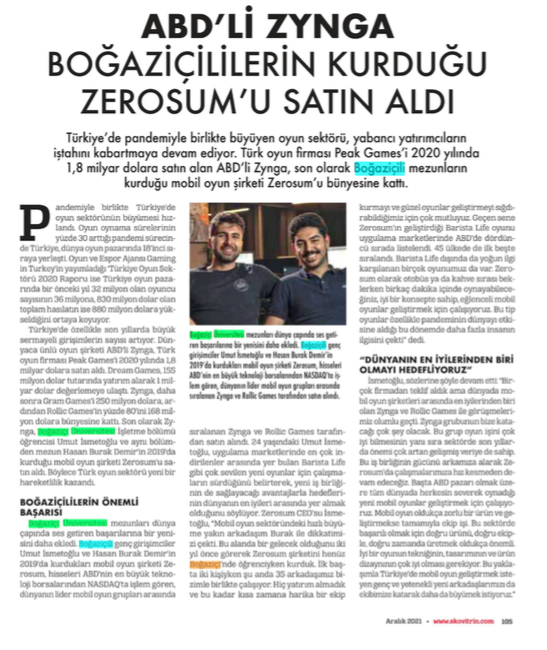ABD'li Zynga Boğaziçililerin kurduğu Zerosum'ı satın aldı