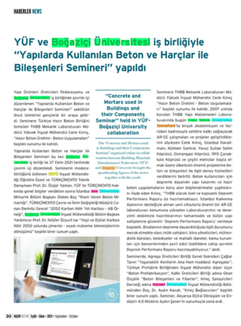 YÜF ve Boğaziçi Üniversitesi iş birliğiyle "Yapılarda Kullanılan Beton ve Harçlar ile Bileşenleri Semineri" yapıldı