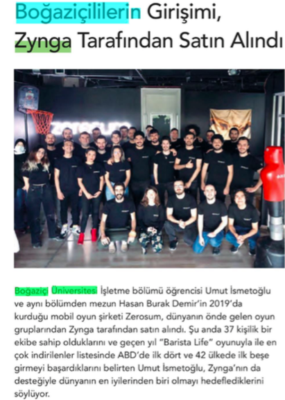 Boğaziçlilerin girişimi Zynga tarafından satın alındı