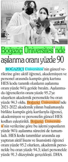 Boğaziçi'nde aşılanma oranı yüzde 90