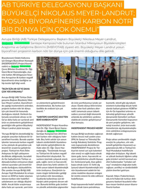 AB Türkiye Delegasyonu Başkanı Büyükelçi Nikolaus Meyer-Landrut: “Yosun biyorafinerisi karbon nötr bir dünya için çok önemli"
