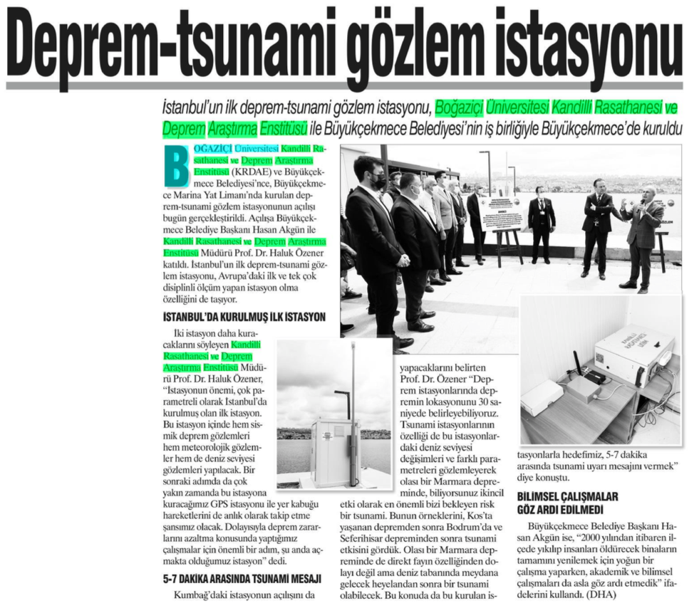 Büyükçekmede'de deprem-tsunami ve gözlem istasyonu kuruldu
