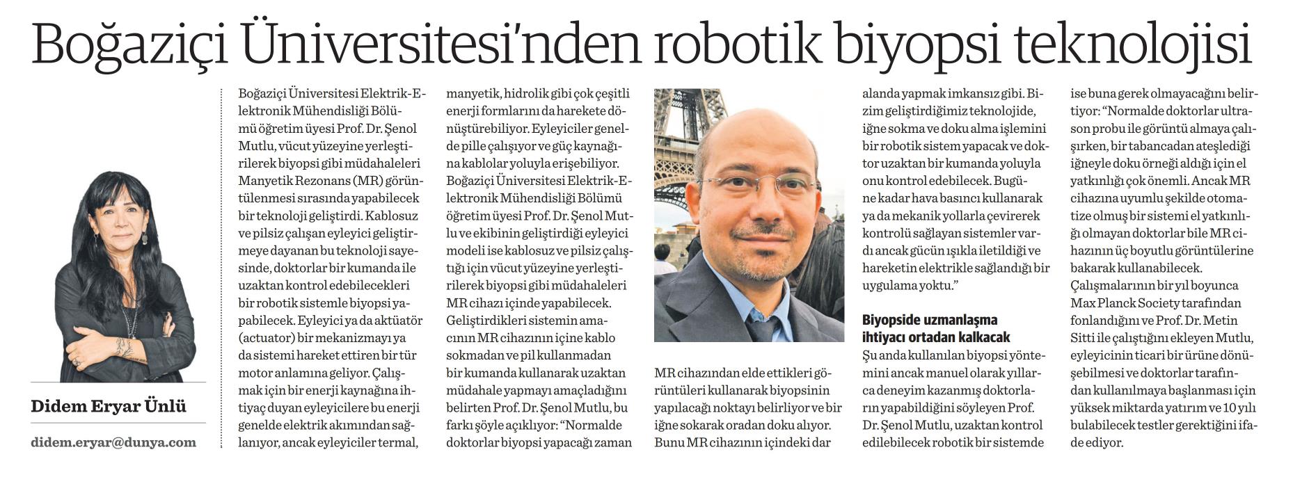 Boğaziçi Üniversitesi'nden robotik biyopsi teknolojisi