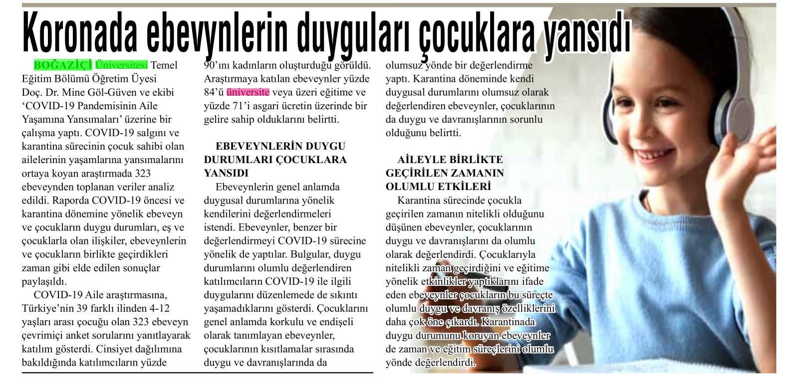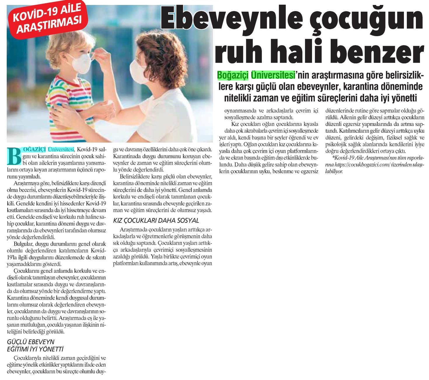 Koronada ebeveynlerin duyguları çocuklara yansıdı