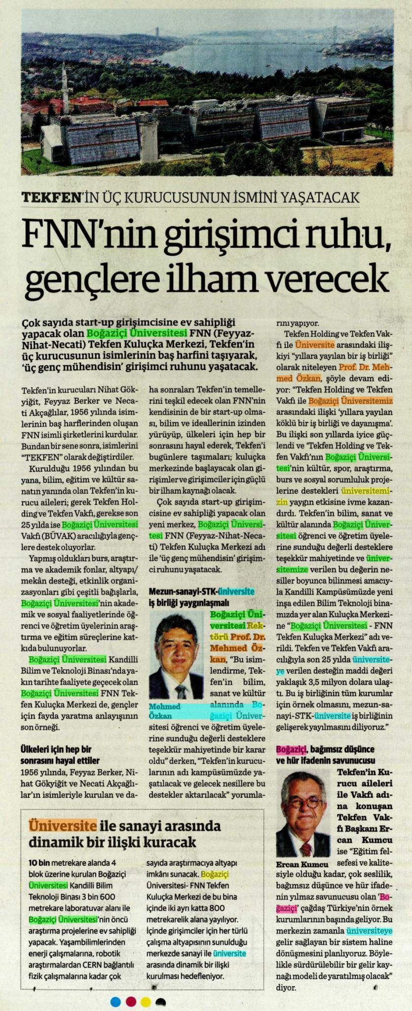 Girişimci fikirler Boğaziçi Üniversitesi FNN Tekfen Kuluçka Merkezi'nde büyüyecek