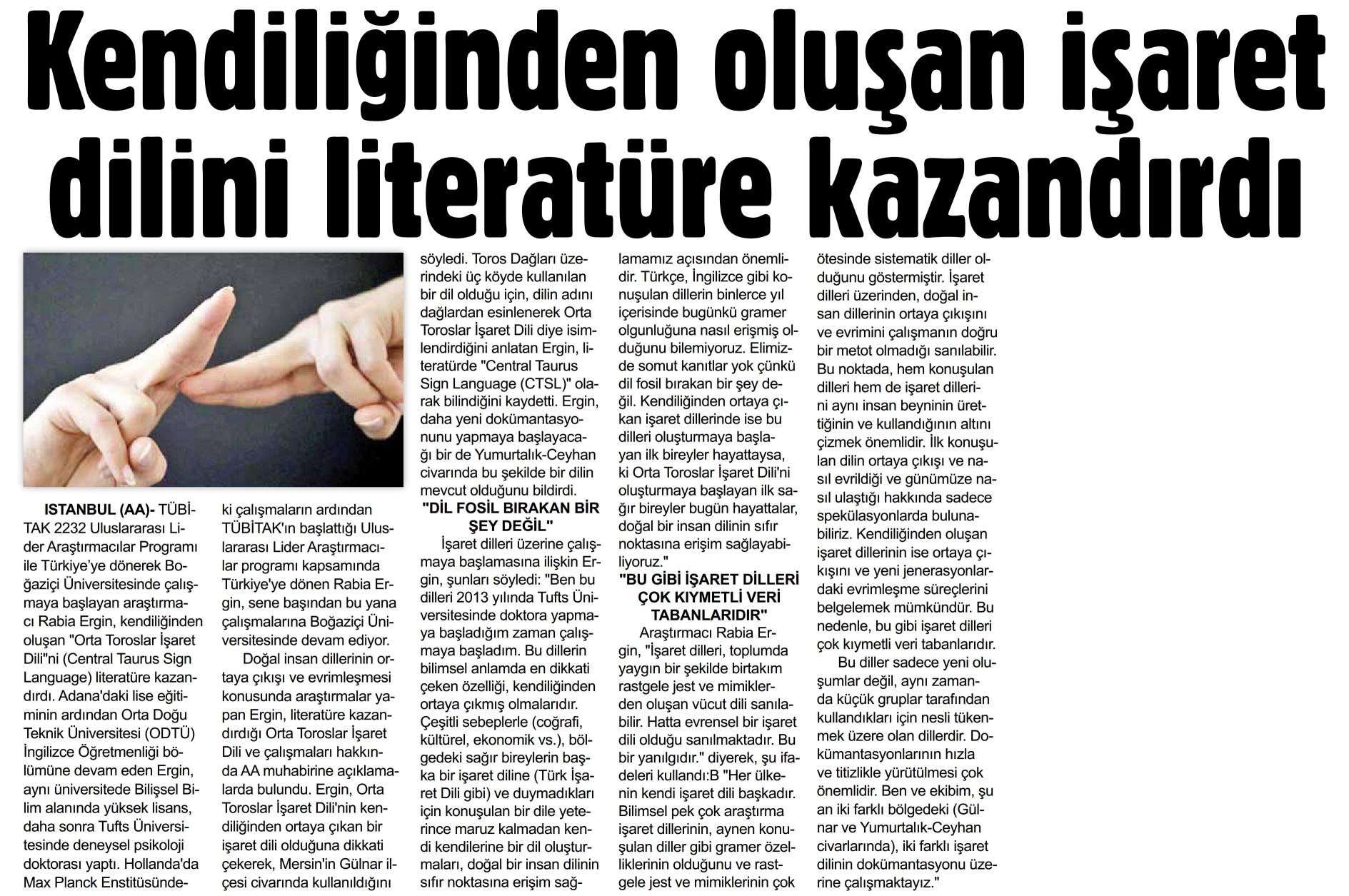 "Orta Toroslar İşaret Dili" literatüre girdi