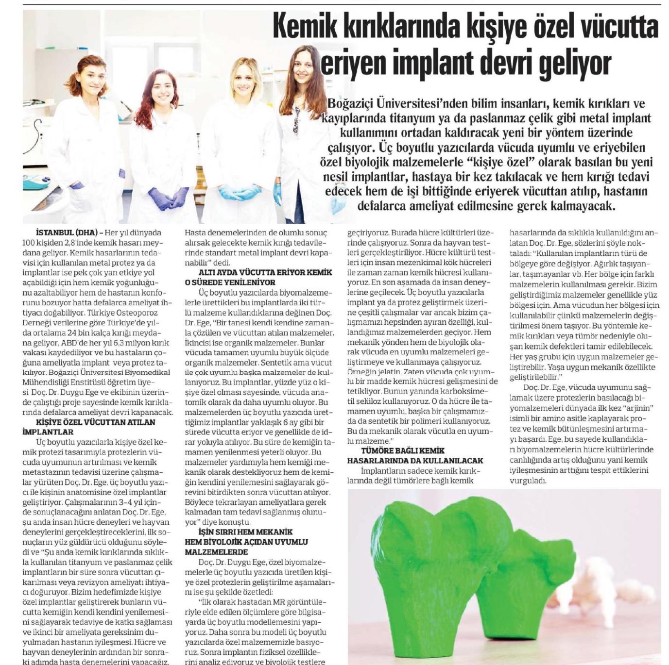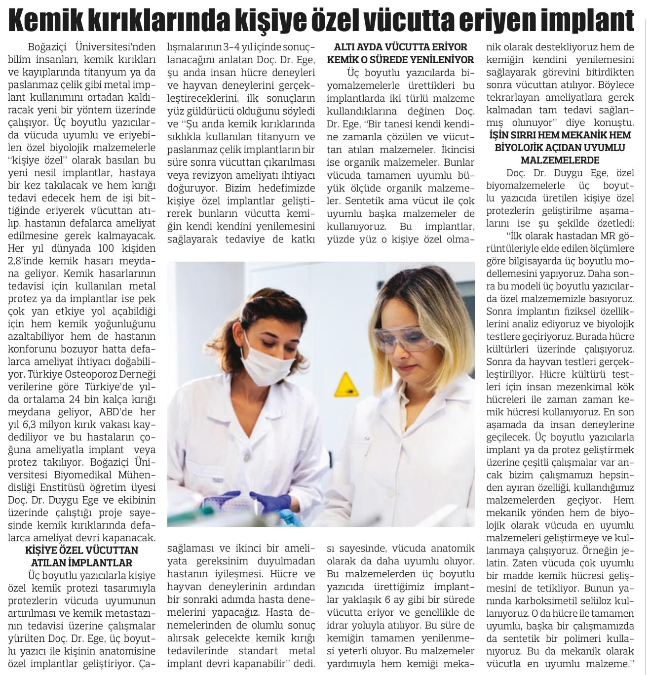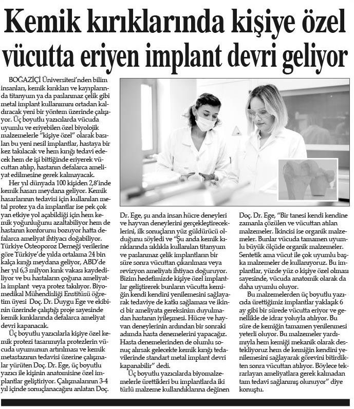 Kemik kırıklarında kişiye özel vücutta eriyen implant