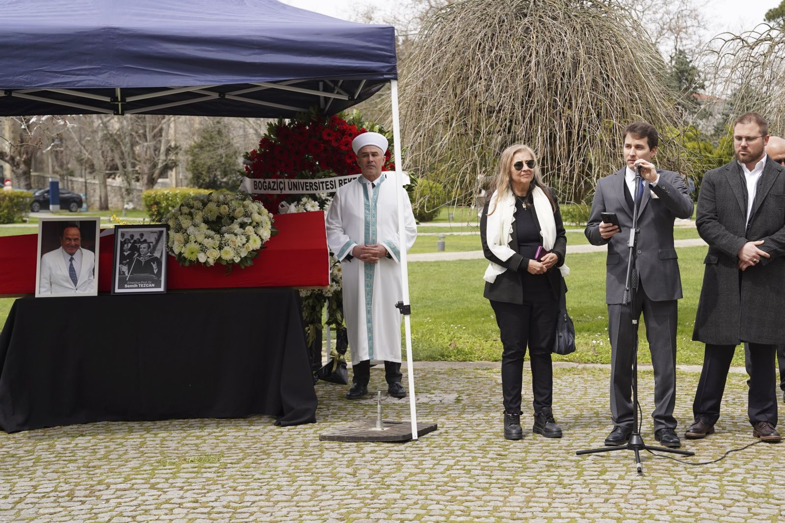 Boğaziçi Üniversitesi eski rektörlerinden, İnşaat Mühendisliği Bölümü emekli öğretim üyesi Prof. Dr. Semih Tezcan, 14 Nisan 2026 tarihinde hayatını kaybetti. Prof. Dr. Tezcan için Güney Kampüs Albert Long Hall binası önünde bir veda töreni düzenlendi.