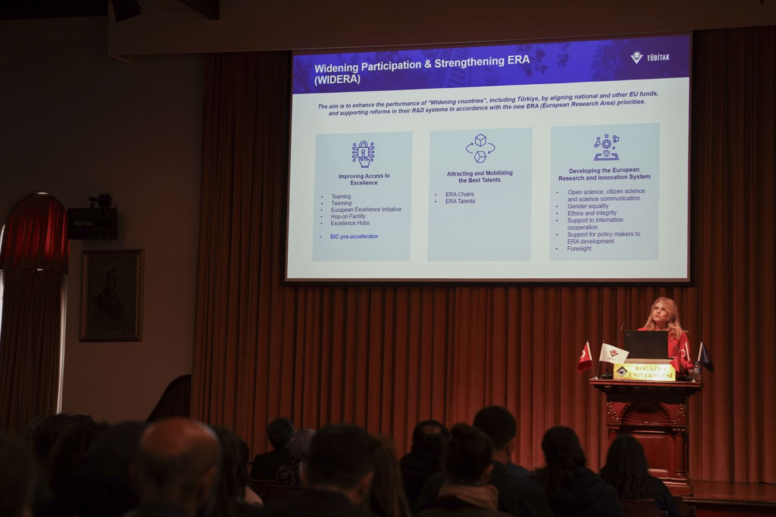 Program, Boğaziçi Üniversitesi Rektörü Prof. Dr. Mehmet Naci İnci’nin açılış konuşmasıyla başladı. Açılışın ardından Avrupa Komisyonu Araştırma Yürütme Ajansı temsilcisi Audrey Arfi, MSCA çağrılarına ilişkin güncel bilgiler ve başvuru süreçlerine dair önemli detaylar paylaştı.