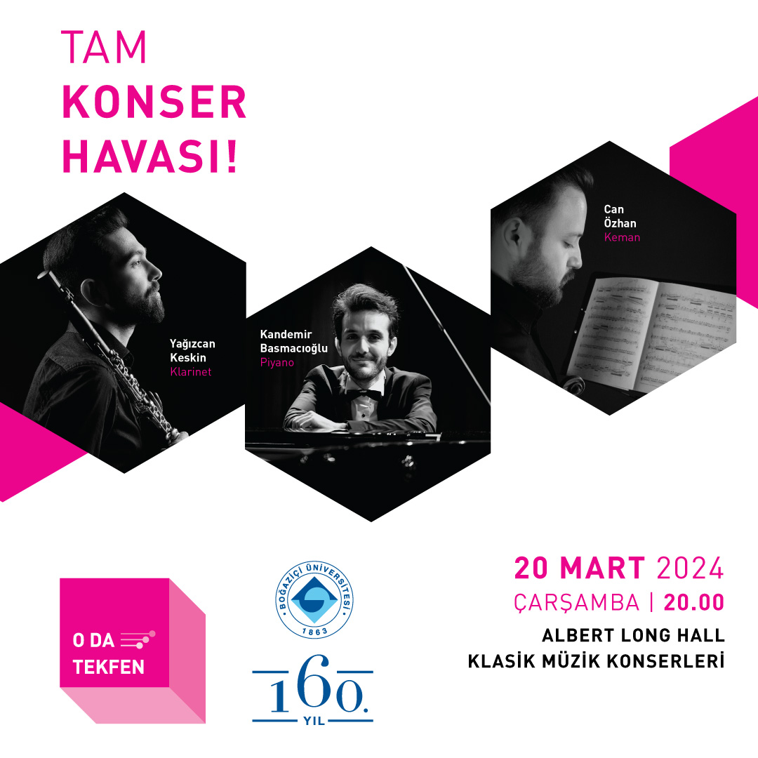 Boğaziçi Üniversitesi'nin köklü müzik etkinlikleri arasında yer alan Albert Long Hall Klasik Müzik Konserleri'nin 20 Mart programında keman, klarinet ve piyanonun buluştuğu oda müziği eserleri seslendirilecek.