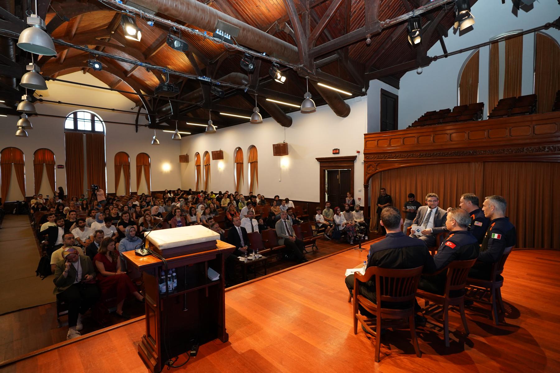 Türkiye'nin ilk astronotu Alper Gezeravcı ile birlikte Axiom-3 misyonunda yer alan Michael López-Alegría, Walter Villadei, Marcus Wandt Boğaziçililerle buluştu. Boğaziçi Üniversitesi Rektörü Prof. Dr. Mehmet Naci İnci’nin karşıladığı ekip, misyondaki deneyim ve hislerini paylaştı.