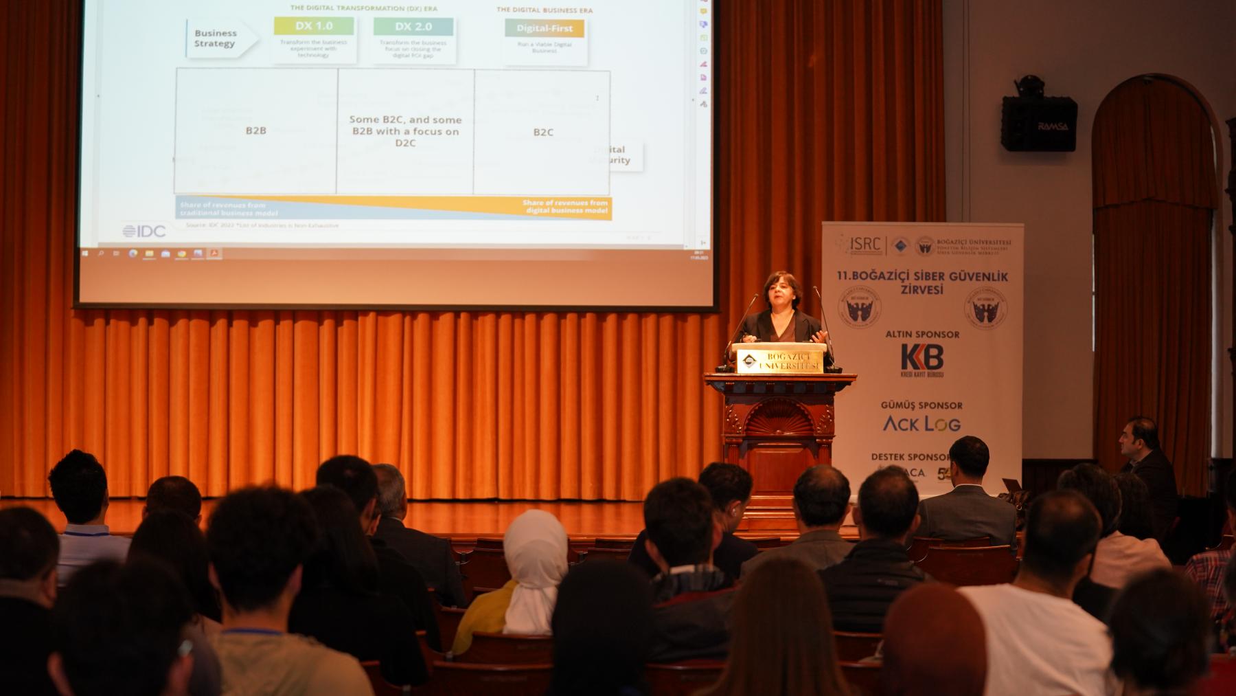 Boğaziçi Üniversitesi Elektrik-Elektronik Mühendisliği Bölümü Yüksek Lisans Mezunu olan IDC Türkiye Ülke Direktörü Nevin Çizmecioğulları, dijital dünya ile siber güvenliğin gelişim serüveni ile ilgili detaylı bir sunumu yaptı.