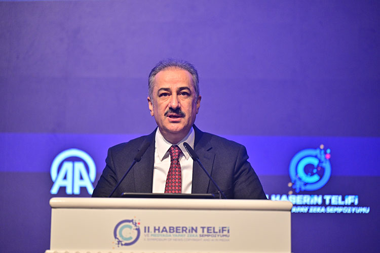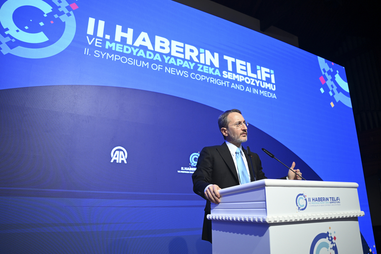 Fahrettin Altun, "Örneğin, Anadolu Ajansının pandemi döneminde yaptığı gazetecilik, yine Rusya-Ukrayna Savaşı'nda sergilediği habercilik performansı, yahut 7 Ekim'den bu yana İsrail'in Gazze'de soykırım uyguladığı dönemden bu yana verdiği hakikat mücadelesi 'yalın birer olgusal veri paylaşımı etkinliği' olarak ele alınamaz. Çok açık ve net bir şekilde vurgulamak istiyorum. Haber metni, mutlak surette telif hakkı kapsamına alınarak korunması gereken bir eserdir. Bu analog medya dönemi için de dijital medya dönemi için de geçerli olan bir gerçekliktir. Hatta ve hatta içinde bulunduğumuz şu dijital medya-iletişim ekosistemi içinde haberin telif hakkıyla korunması meselesi, analog medya döneminden çok daha önemli ve acil bir hal almıştır. Zira bugün orijinal haber içeriklerinin izinsiz bir şekilde kolaylıkla ve hızla dolaşıma sokulabildiğini görüyoruz" diye konuştu.