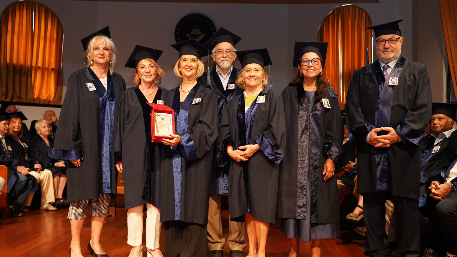 Vefat eden mezunların da anıldığı buluşmada kep ve cübbeleriyle mezuniyet töreni atmosferini yeniden canlandıran mezunlar, 50’nci yıl sertifikalarını dönem hocalarının elinden aldı.